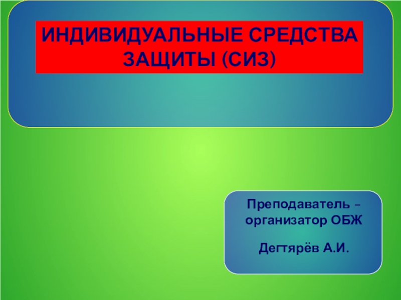 ИНДИВИДУАЛЬНЫЕ СРЕДСТВА ЗАЩИТЫ (СИЗ)Преподаватель – организатор ОБЖ Дегтярёв А.И.