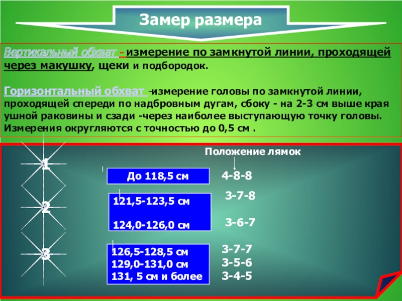 Замер размеранужно измерить голову по замкнутой линии, проходящей через макушку, щеки и подбородок Р А З М