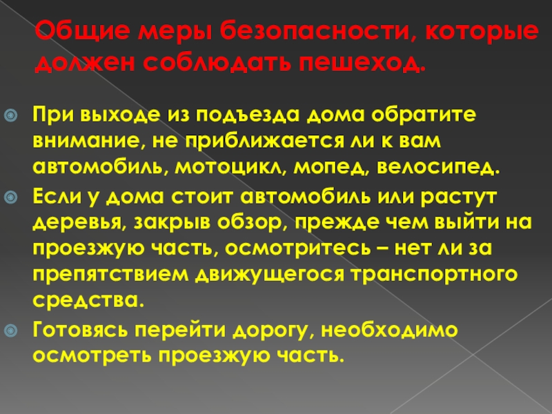 Слайд 11Общие меры безопасности, которые должен соблюдать пешеход.