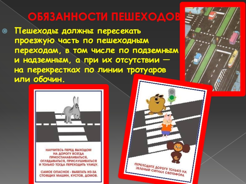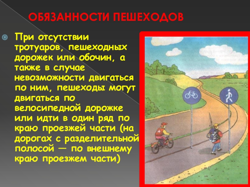 Слайд 10ОБЯЗАННОСТИ ПЕШЕХОДОВ