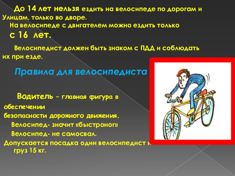 До 14 лет нельзя ездить на велосипеде по дорогам и