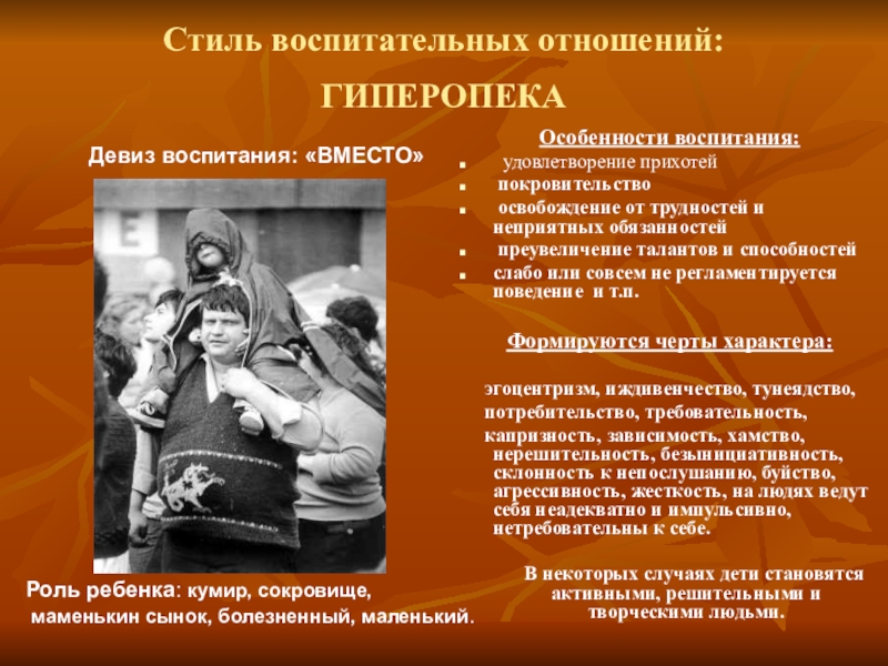 Роль ребенка: кумир, сокровище,