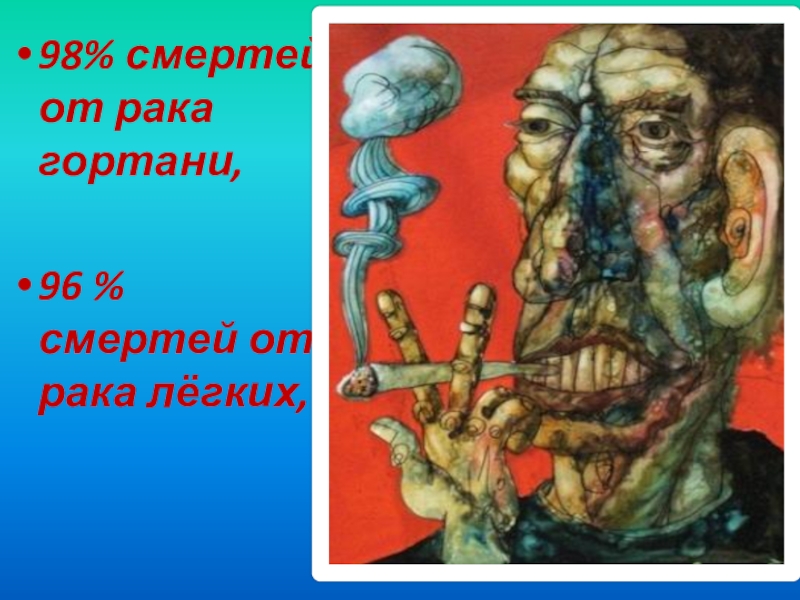 98% смертей от рака гортани, 96 % смертей от рака лёгких,