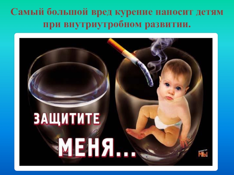Слайд 33Самый большой вред курение наносит детям при внутриутробном развитии.