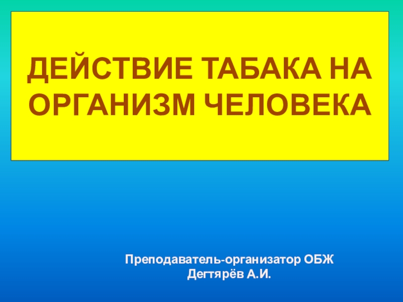 ДЕЙСТВИЕ ТАБАКА НА ОРГАНИЗМ ЧЕЛОВЕКАПреподаватель-организатор ОБЖДегтярёв А.И.