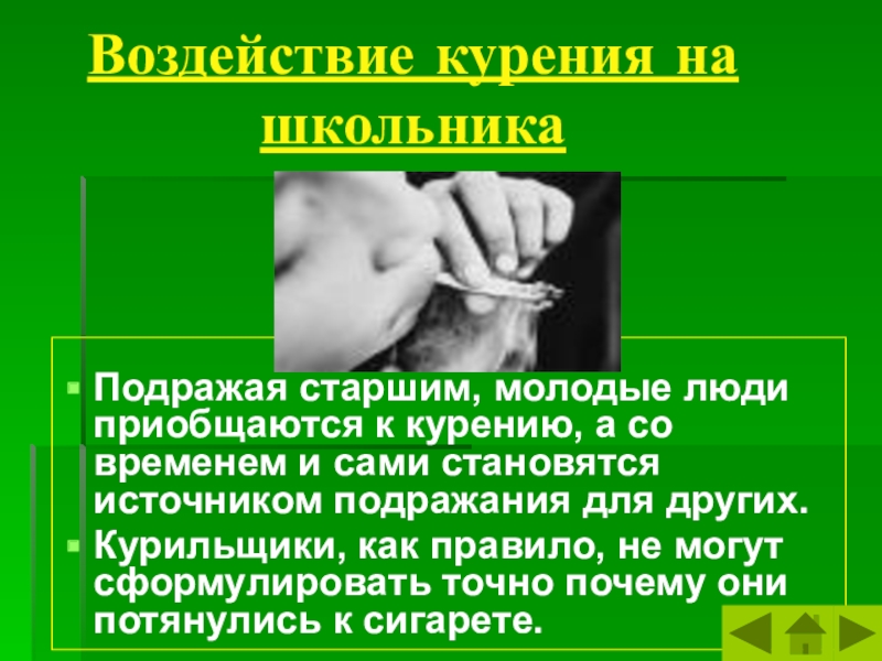 Курильщики, как правило, не могут сформулировать точно почему они потянулись к сигарете.