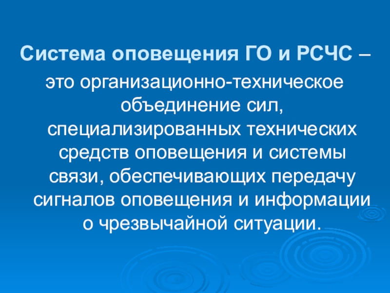 Система оповещения ГО и РСЧС – это организационно-техническое объединение сил, специализированных технических средств оповещения и системы связи,