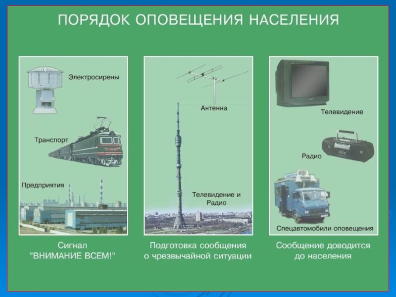 «Оповещение населения об опасностях, возникающих в ЧС мирного и военного времени»Вопросы урока: 1. Понятие оповещения и содержание сообщений.2. Организация и способы оповещения.