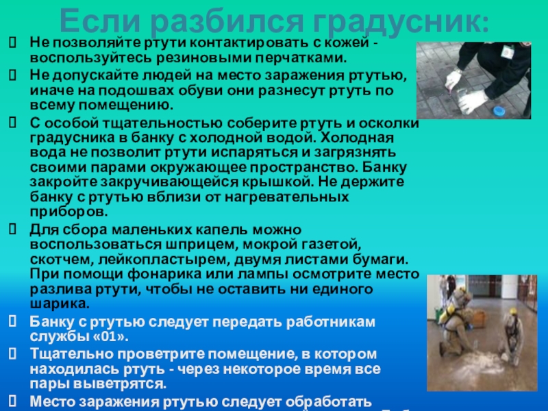 Не позволяйте ртути контактировать с кожей - воспользуйтесь резиновыми