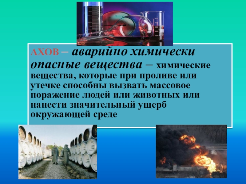 Слайд 3АХОВ – аварийно химически опасные вещества – химические вещества, которые при