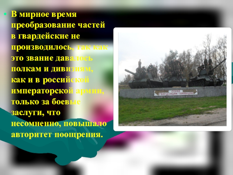 Слайд 6В мирное время преобразование частей в гвардейские не производилось, так как