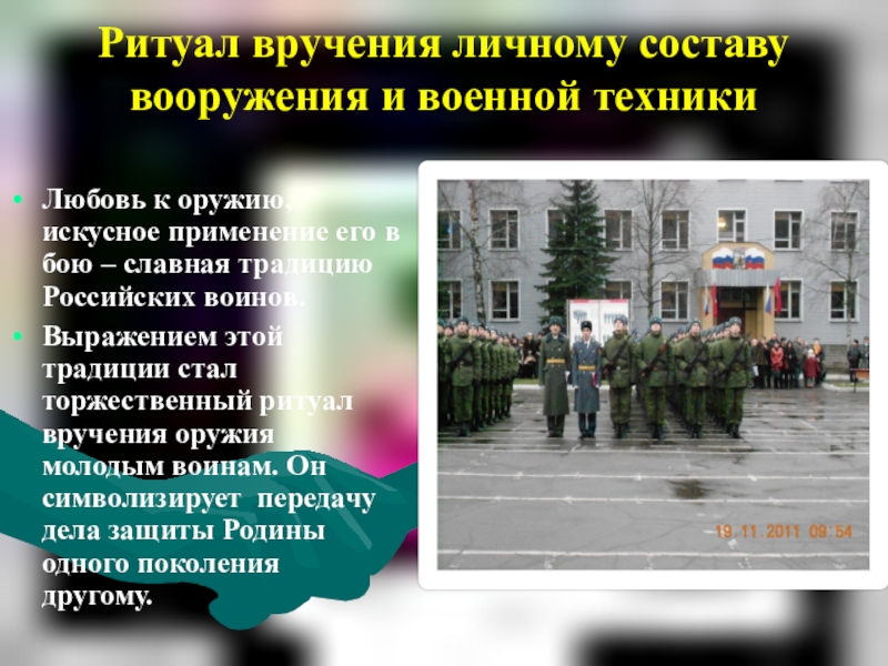 Слайд 7Ритуал вручения личному составу вооружения и военной техники
