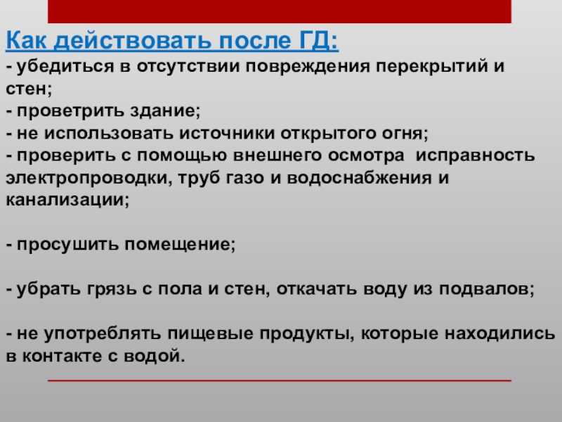 - убрать грязь с пола и стен, откачать воду из подвалов;