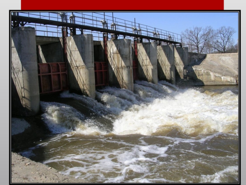 плотин, дамб и гидроузлов. Непосредственную опасность представляет стремительный и мощный поток воды, вызывающий поражения, затопления и разрушения зданий и сооружений.