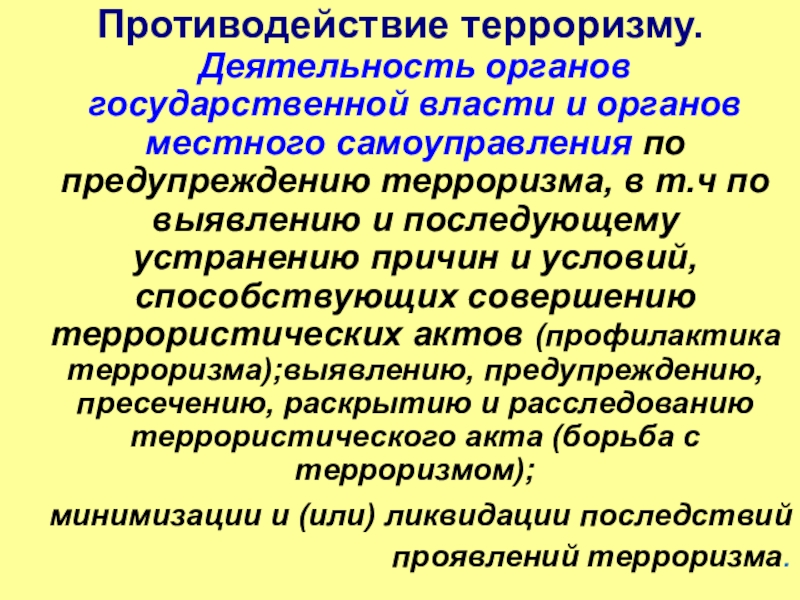 Слайд 10Противодействие терроризму. Деятельность органов государственной власти и органов местного самоуправления по