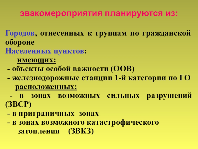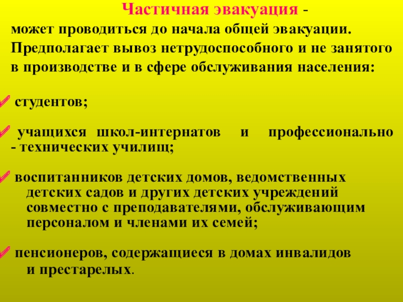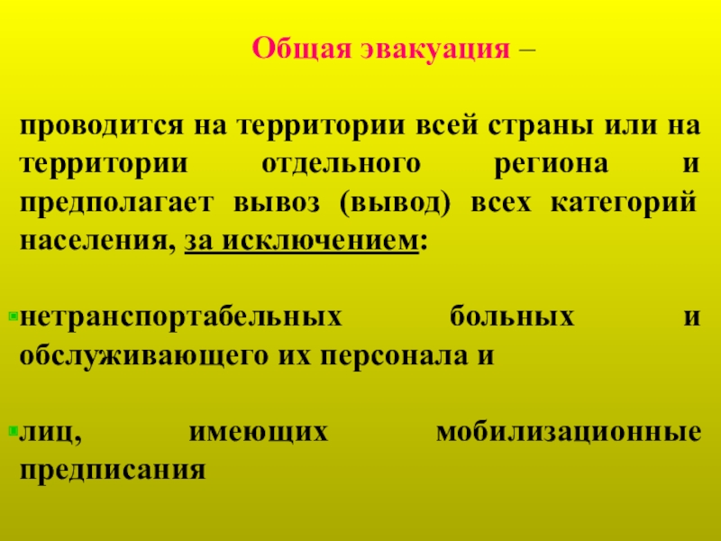 проводится на территории всей страны или на территории отдельного региона и предполагает вывоз (вывод) всех категорий населения, за исключением: