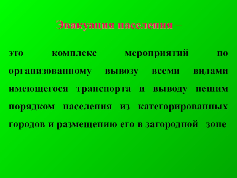 имеющегося транспорта и выводу пешим порядком населения из категорированных городов и размещению его в загородной зоне