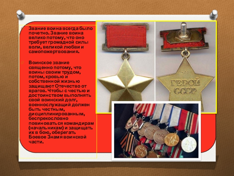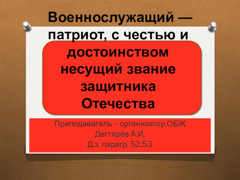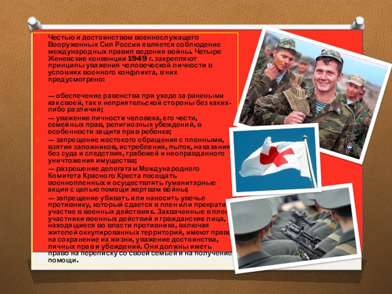 * Во-первых, каждый военнослужащий должен глубоко осознать личную ответственность за защиту Родины, добросовестно и честно выполнять свои служебные обязанности.