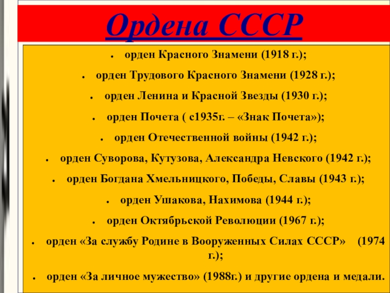 Одновременно с положением об ордене Ленина был утвержден статут ордена Красной Звезды, которым награждались за большие заслуги в деле бороны СССР как в военное, так и в мирное время.