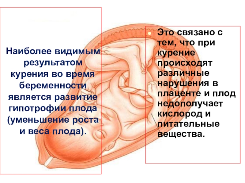 Это связано с тем, что при курение происходят различные нарушения в плаценте и плод недополучает кислород и питательные вещества.