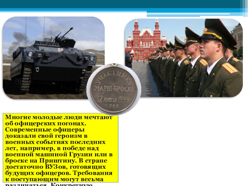 Презентация, доклад урока по ОБЖ на тему: Как стать офицером Российской армии (11 класс)