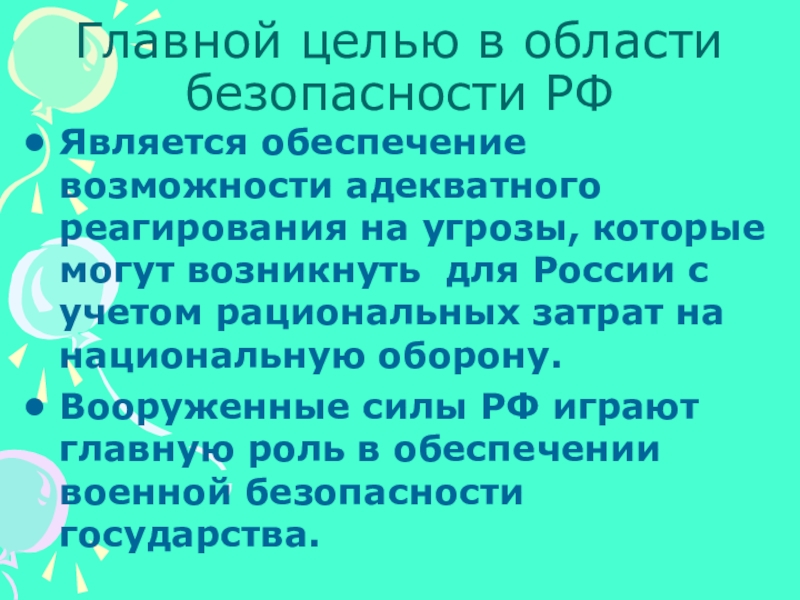 Вооруженные силы РФ играют главную роль в обеспечении военной безопасности государства.