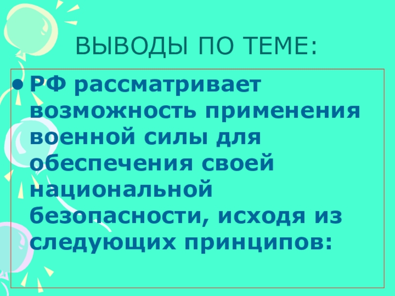 Слайд 13ВЫВОДЫ ПО ТЕМЕ: