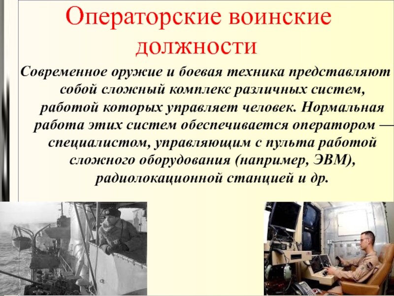 Слайд 5 Операторские воинские должности