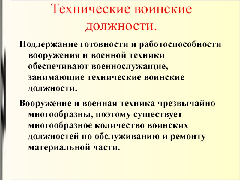 Слайд 12Технические воинские должности.