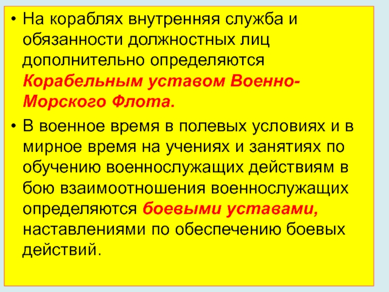 Слайд 5На кораблях внутренняя служба и обязанности должностных лиц дополнительно определяются Корабельным