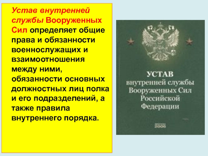Слайд 3 Устав внутренней службы Вооруженных Сил определяет общие права и