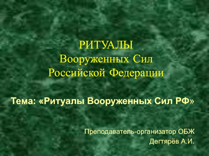 РИТУАЛЫ  Вооруженных Сил  Российской ФедерацииТема: «Ритуалы Вооруженных Сил РФ»Преподаватель-организатор ОБЖДегтярёв А.И.