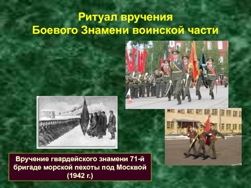 Ритуал вручения  Боевого Знамени воинской частиВручение гвардейского знамени 71-й бригаде морской пехоты под Москвой (1942 г.)