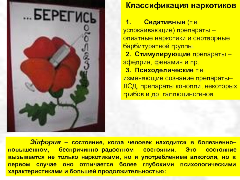 1. Седативные (т.е. успокаивающие) препараты – опиатные наркотики и снотворные