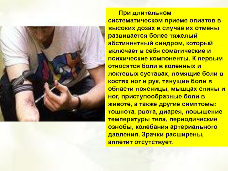 Слайд 9 При длительном систематическом приеме опиатов в высоких дозах