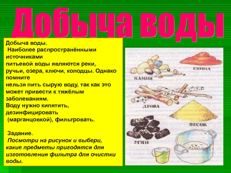 есть привычные для твоего организма продукты, пить кипячёную воду;