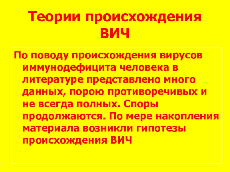 много данных, порою противоречивых и не всегда полных. Споры продолжаются. По мере накопления материала возникли гипотезы происхождения ВИЧ