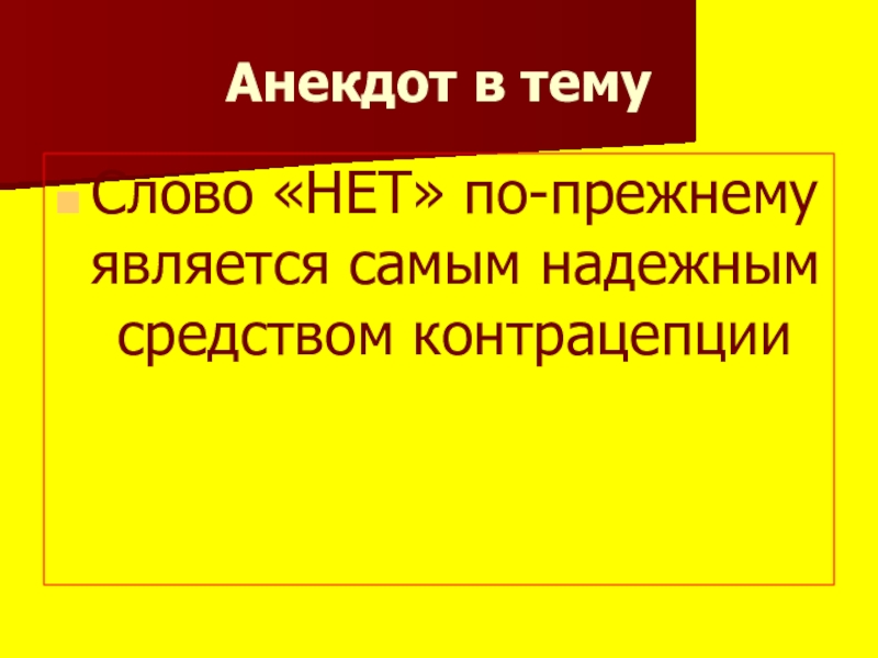 Анекдот в темуСлово «НЕТ» по-прежнему является самым надежным средством контрацепции