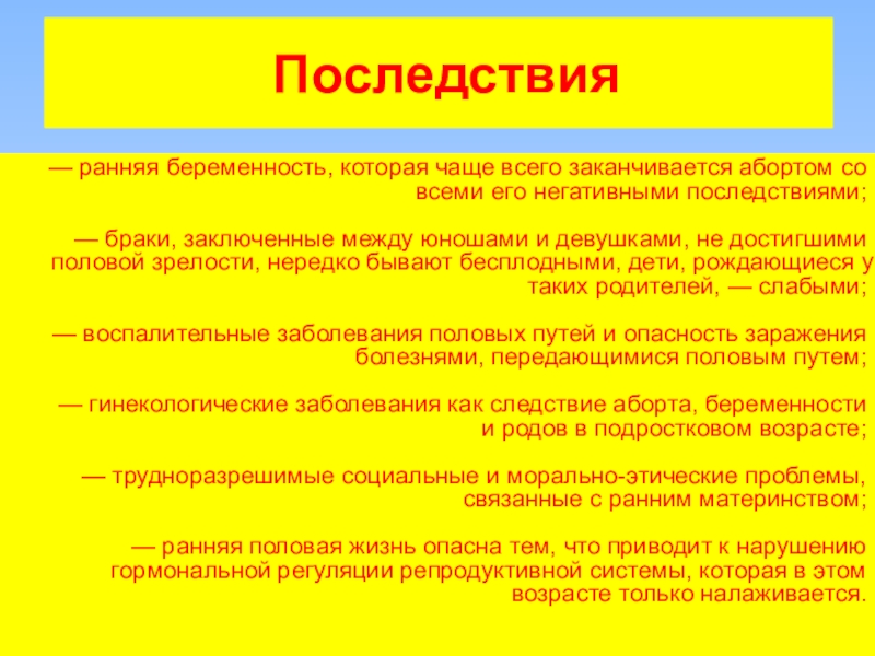 — ранняя половая жизнь опасна тем, что приводит к нарушению гормональной регуляции репродуктивной системы, которая в этом возрасте только налаживается.
