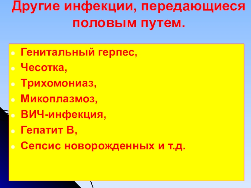 Слайд 7Другие инфекции, передающиеся половым путем.