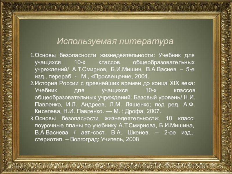 Основы безопасности жизнедеятельности: 10 класс: поурочные планы по учебнику А.Т.Смирнова, Б.И.Мишина, В.А.Васнева / авт.-сост. В.А. Шкенев. – 2-ое изд., стериотип. – Волгоград: Учитель, 2008