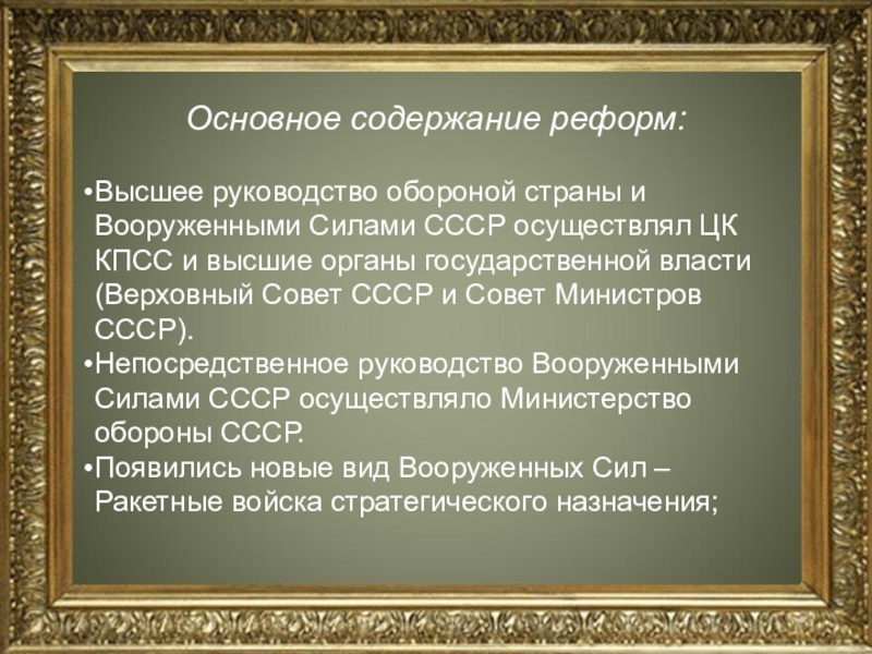 В середине 50-х годов началось коренное преобразование Советских Вооруженных Сил, оснащение их ракетно-ядерным оружием и другими новейшими видами оружия и военной техники.