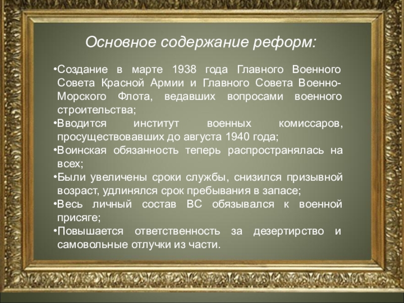 Были увеличены сроки службы, снизился призывной возраст, удлинялся срок пребывания в запасе;