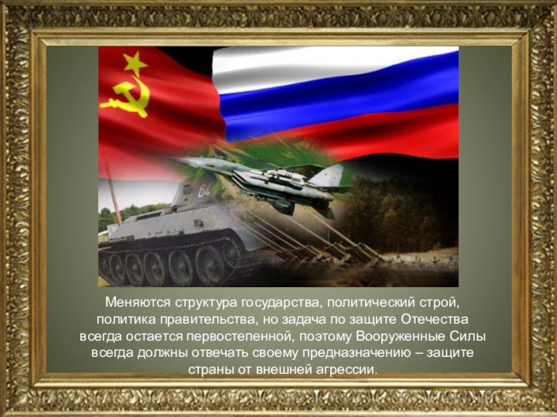 Отечества всегда остается первостепенной, поэтому Вооруженные Силы всегда должны отвечать своему предназначению – защите страны от внешней агрессии.