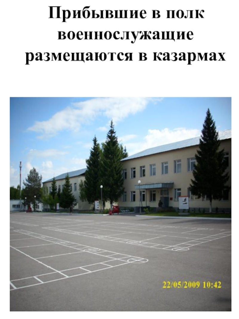 Слайд 3 Прибывшие в полк военнослужащие размещаются в казармах