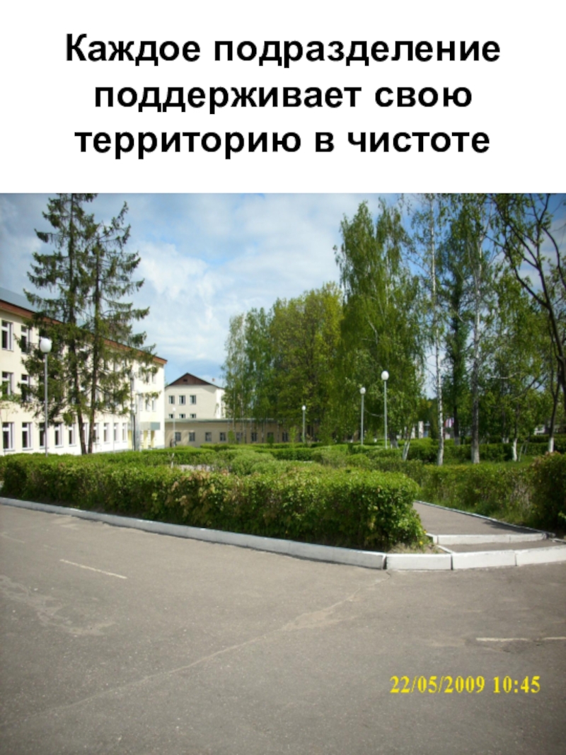 Слайд 15Каждое подразделение поддерживает свою территорию в чистоте
