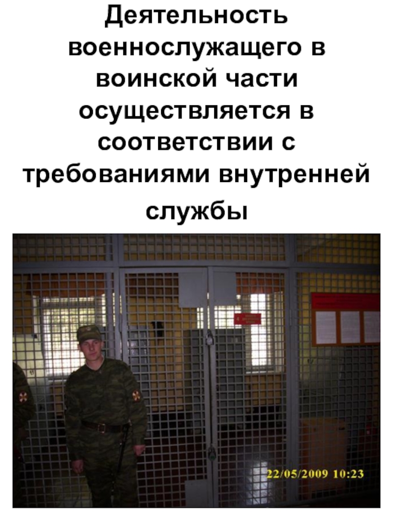 Слайд 6Деятельность военнослужащего в воинской части осуществляется в соответствии с требованиями внутренней