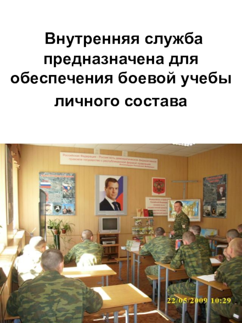 Слайд 12 Внутренняя служба предназначена для обеспечения боевой учебы личного состава