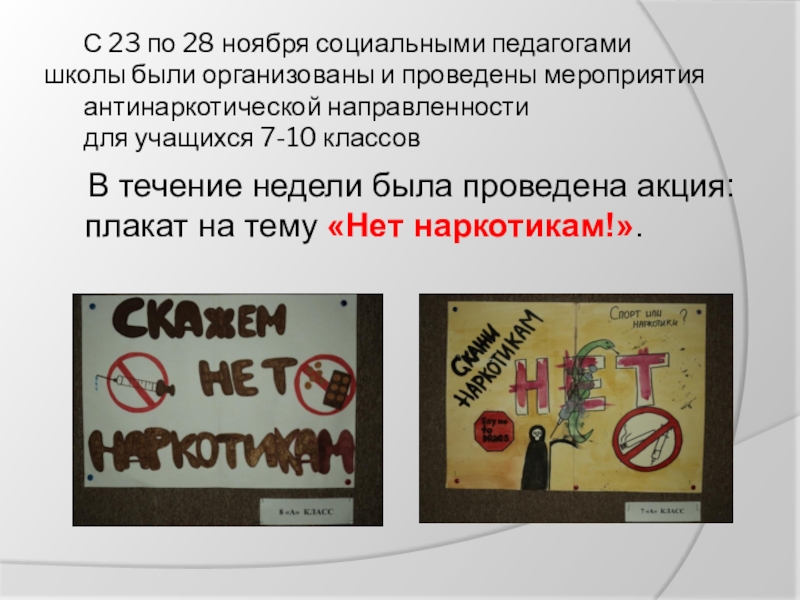 Слайд 8 С 23 по 28 ноября социальными педагогами школы были организованы и