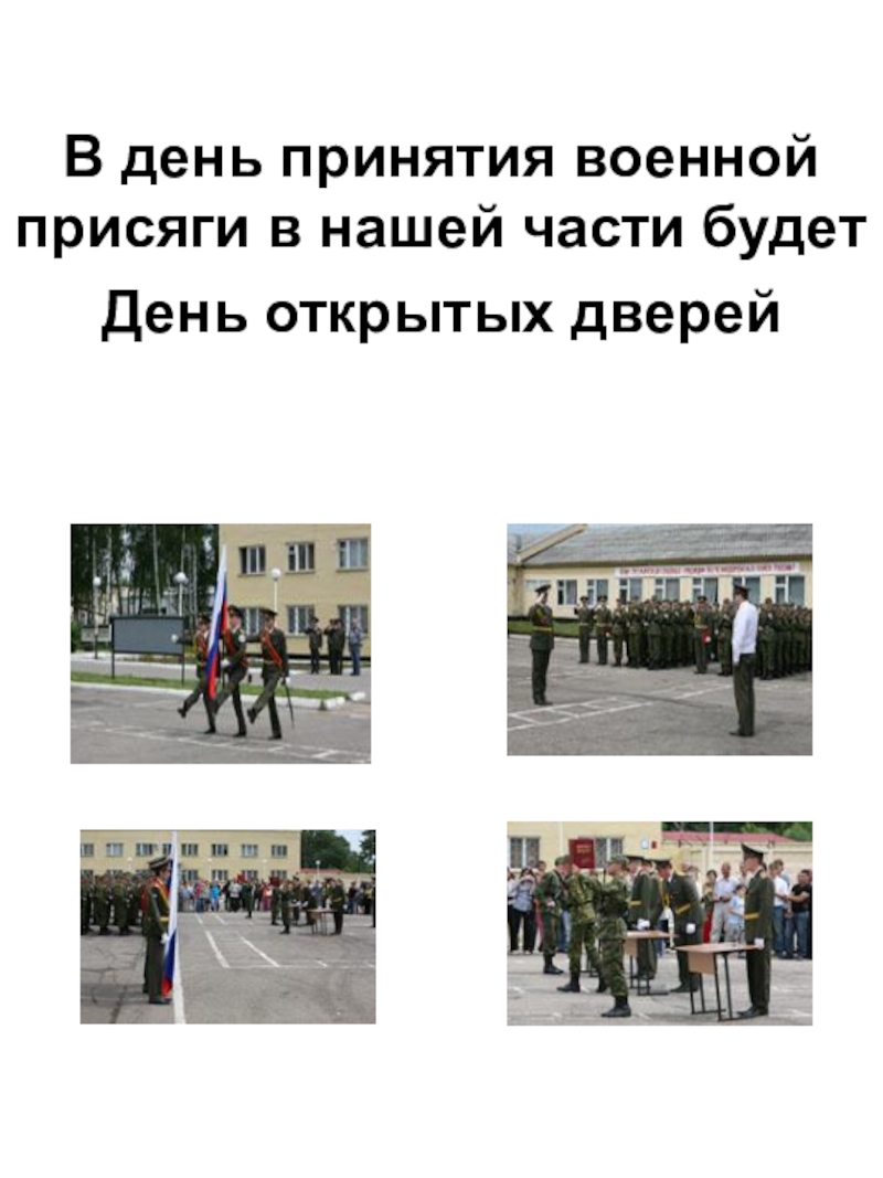 Слайд 10В день принятия военной присяги в нашей части будет День открытых